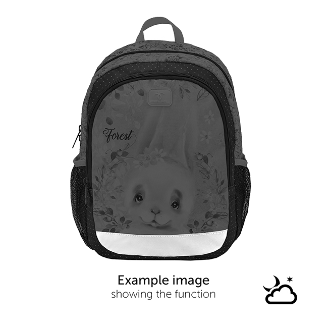 Ranac je proizveden sa kvalitetnim rajsferšlusom. Postavljene fluorescentne trake daju vidljivost po mraku. Na rancu se nalazi jedna duža ručka kako bi i roditelji mogli da nose ovaj ranac.