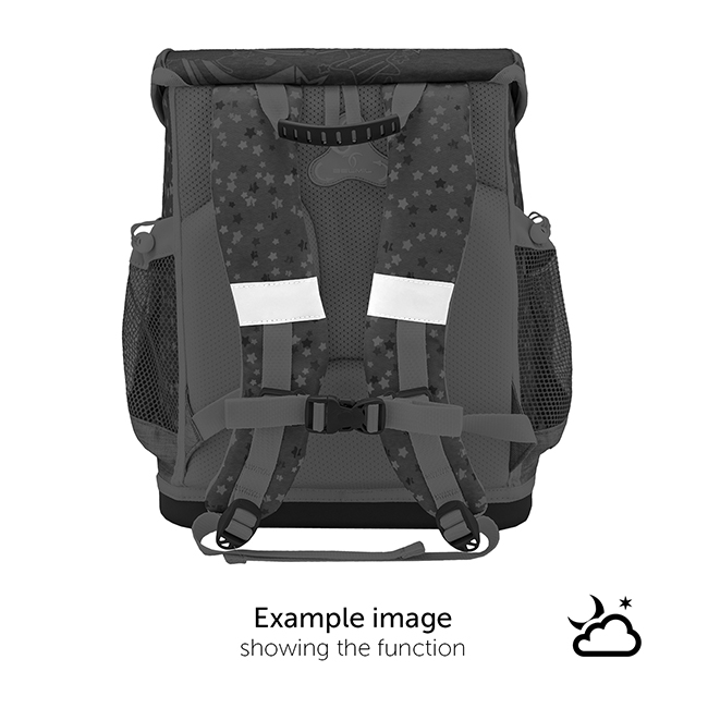 Sa Belmil torbom sigurnost je zagarantovana i kad je mračno: fluorescentni elementi postavljeni na pažljivo odabrana mesta, jaka i laka za upotrebu, reflektujuća metalna bravica, obezbeđuju sigurnost i vidljivost po mraku.